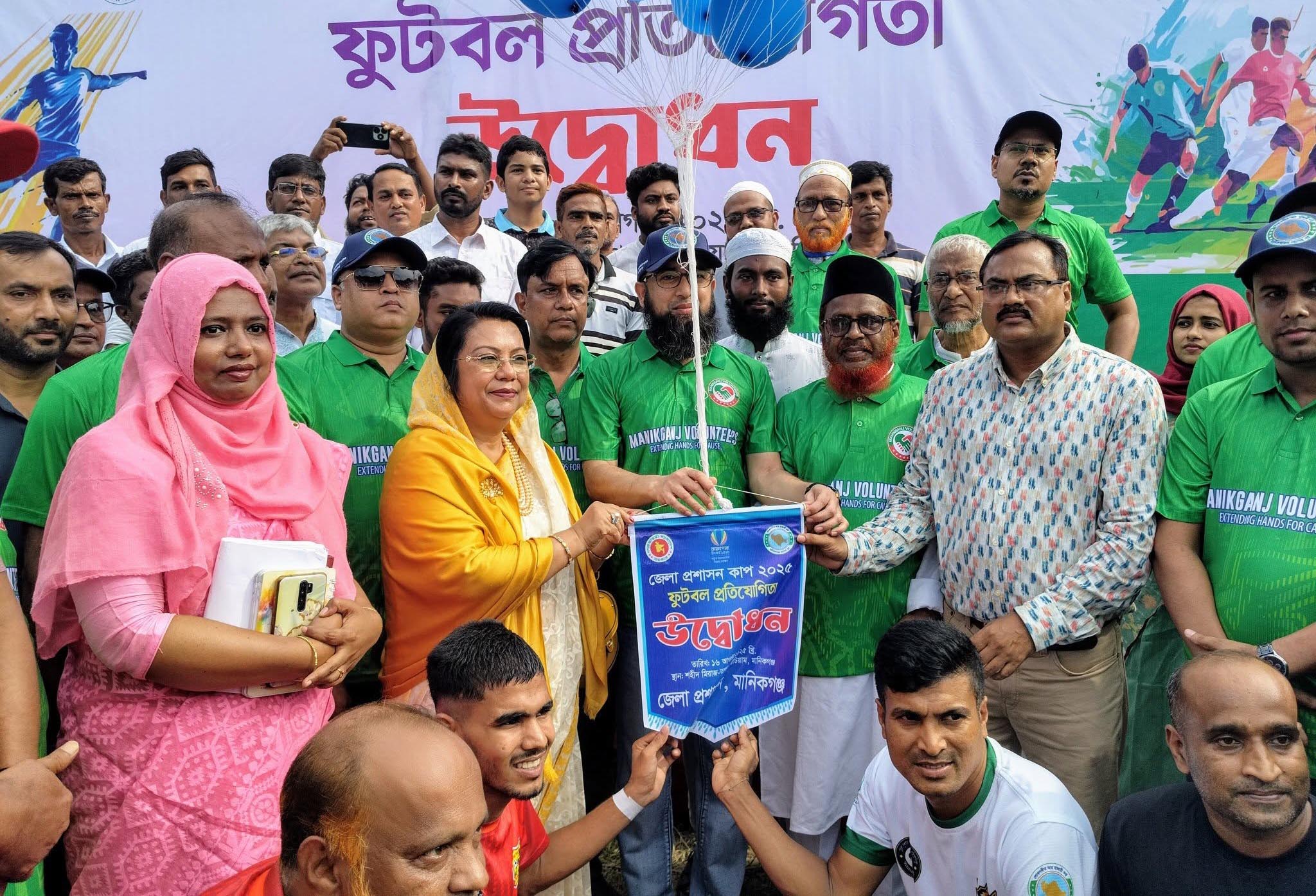 নিজস্ব প্রতিনিধি : মানিকগঞ্জ শহীদ মিরাজ-তপন স্টেডিয়ামে শুরু হয়েছে জেলা প্রশাসন কাপ ফুটবল টুর্নামেন্ট। আজ (শনিবার) বিকেলে এই টুর্নামেন্টের উদ্বোধন