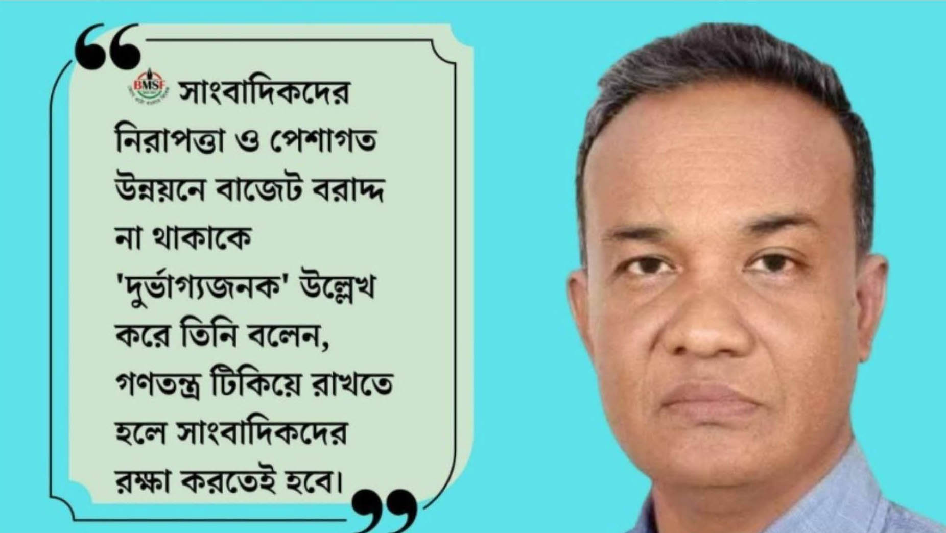 বাজেট ঘোষণার আগে সাংবাদিকদের জন্য প্রশিক্ষণ, সুরক্ষা ও চিকিৎসাখাতে আলাদা বরাদ্দের দাবি করেছেন বাংলাদেশ মফস্বল সাংবাদিক ফোরাম (বিএমএসএফ)’র ট্রাস্টি বোর্ডের